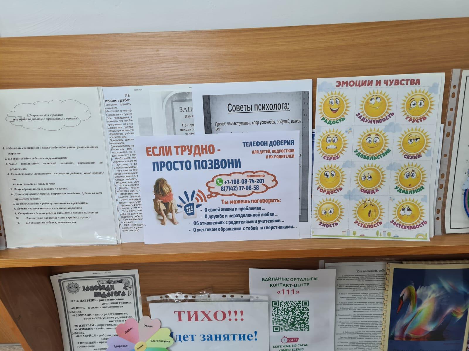 КГУ «Центр поддержки детей, нуждающихся в специальных социальных услугах, города Рудного» Артамоновой Л.А. и Ботвиновой М.А. была проведена информативная работа. Размещение информационных материалов и номеров телефонов доверия РумЦПП на информационных стендах нашего ЦПД. С педагогическим коллективом и воспитанниками Центра поддержки детей была проведена разъяснительная работа в виде беседы, подчеркивая важность анонимной и бесплатной психологической поддержки, где можно обсудить любые проблемы.
